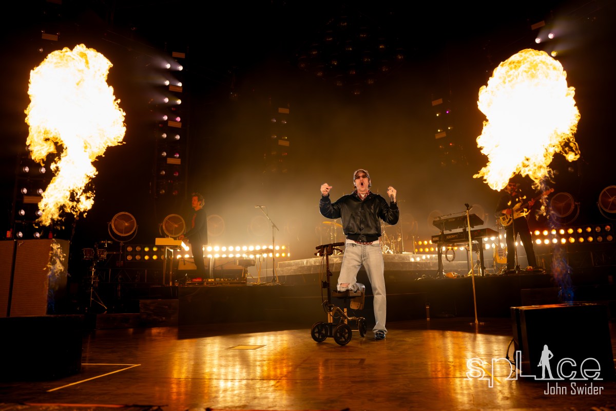 Clarkston,Michigan- Cage the Elephant’s performance Tuesday at Pine Knob was a testament to their resilience and commitment to delivering a memorable show, despite frontman Matt Shultz being limited to a knee scooter due to a broken right foot. The band brought the heat (literally) opening their set with actual flames during “Broken Boy,” simultaneously setting the musical direction for a night of gritty rock and roll. Shultz, despite being unable to roam the stage as he normally would, was his usual self otherwise, channeling his enigmatic energy and emotion through his voice enhanced with some wild and entertaining gestures throughout the set.