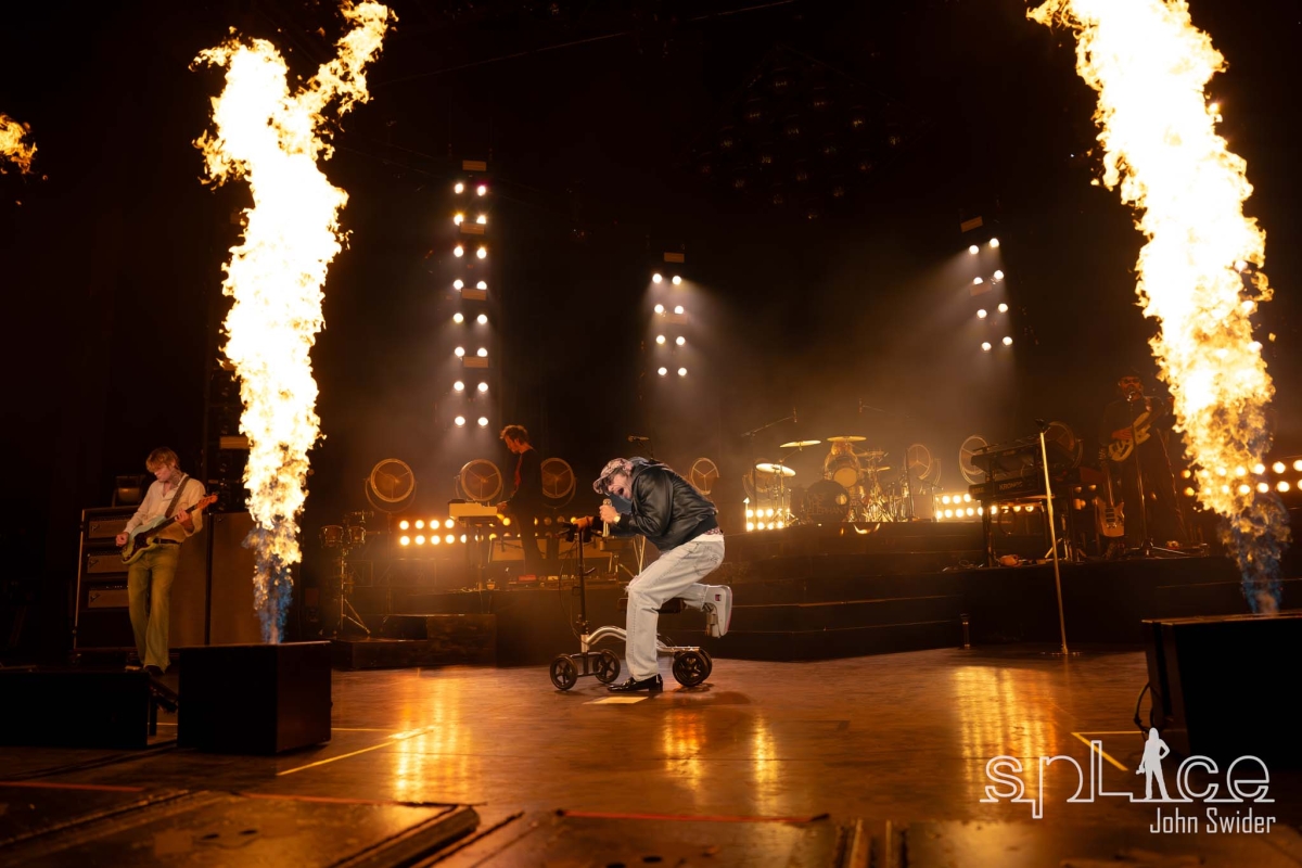 Clarkston,Michigan- Cage the Elephant’s performance Tuesday at Pine Knob was a testament to their resilience and commitment to delivering a memorable show, despite frontman Matt Shultz being limited to a knee scooter due to a broken right foot. The band brought the heat (literally) opening their set with actual flames during “Broken Boy,” simultaneously setting the musical direction for a night of gritty rock and roll. Shultz, despite being unable to roam the stage as he normally would, was his usual self otherwise, channeling his enigmatic energy and emotion through his voice enhanced with some wild and entertaining gestures throughout the set.
