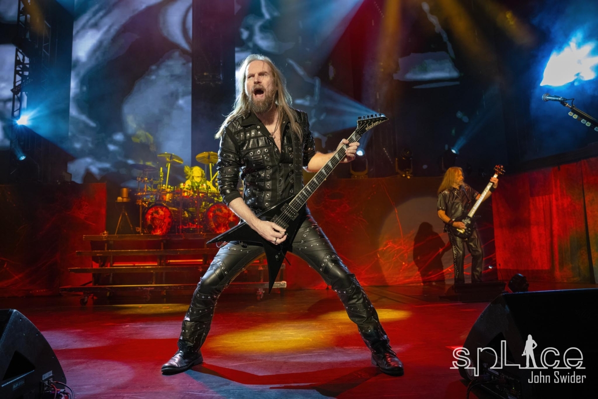 (Sterling Heights, Michigan)- Classic metal shows are always an excellent bang for the buck. The bands are drawing on decades worth of critic and fan-vetted catalogs. So as a fan, you’re just about guaranteed to like at least 90 percent of the songs played. So will everyone around you which also increases the fun factor. These classic acts also come from a time in which putting on a stage show was still valued, so your guaranteed costume changes, pulsing lights, and stage patter that is clearly appreciative of the audience. Tuesday at Michigan Lottery Amphitheatre that’s exactly what you got when heavy metal legends Judas Priest unleashed their Invincible Shield Tour to a small but fervent crowd. The amphitheater, filled with generations of metalheads, were all on hand for an evening that would blend the nostalgic power of the band’s classics with fresh, thunderous material from their new album Invincible Shield.