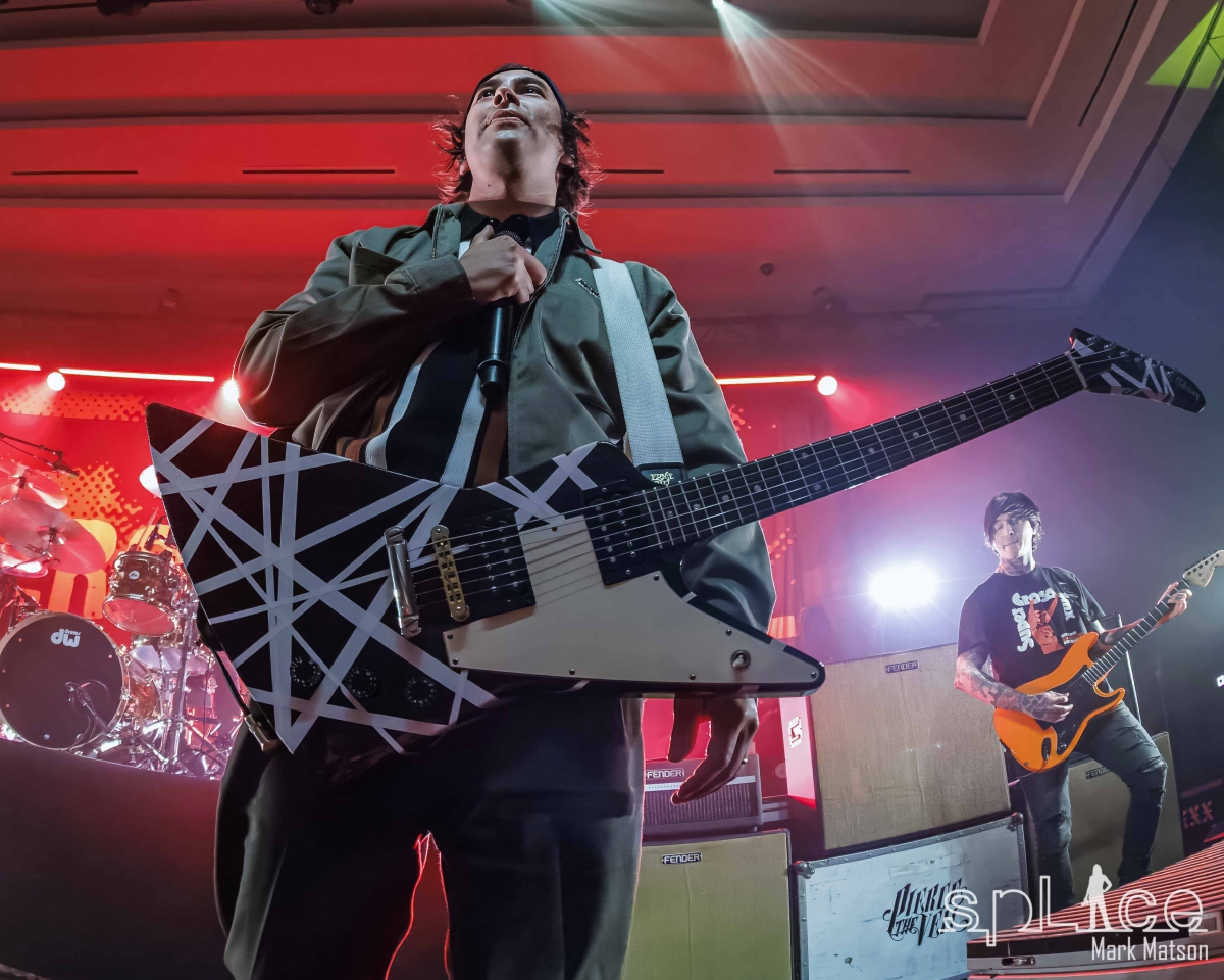 As the lights dimmed and the crowd erupted in anticipation, the first notes of Pierce The Veil’s hit song “Death Of An Executioner” echoed through the venue, instantly setting the tone for the night. The band wasted no time in engaging the audience, with frontman Vic Fuentes leaping onto the stage with boundless energy and a captivating stage presence. His raw vocals and passionate delivery immediately drew everyone into the performance.