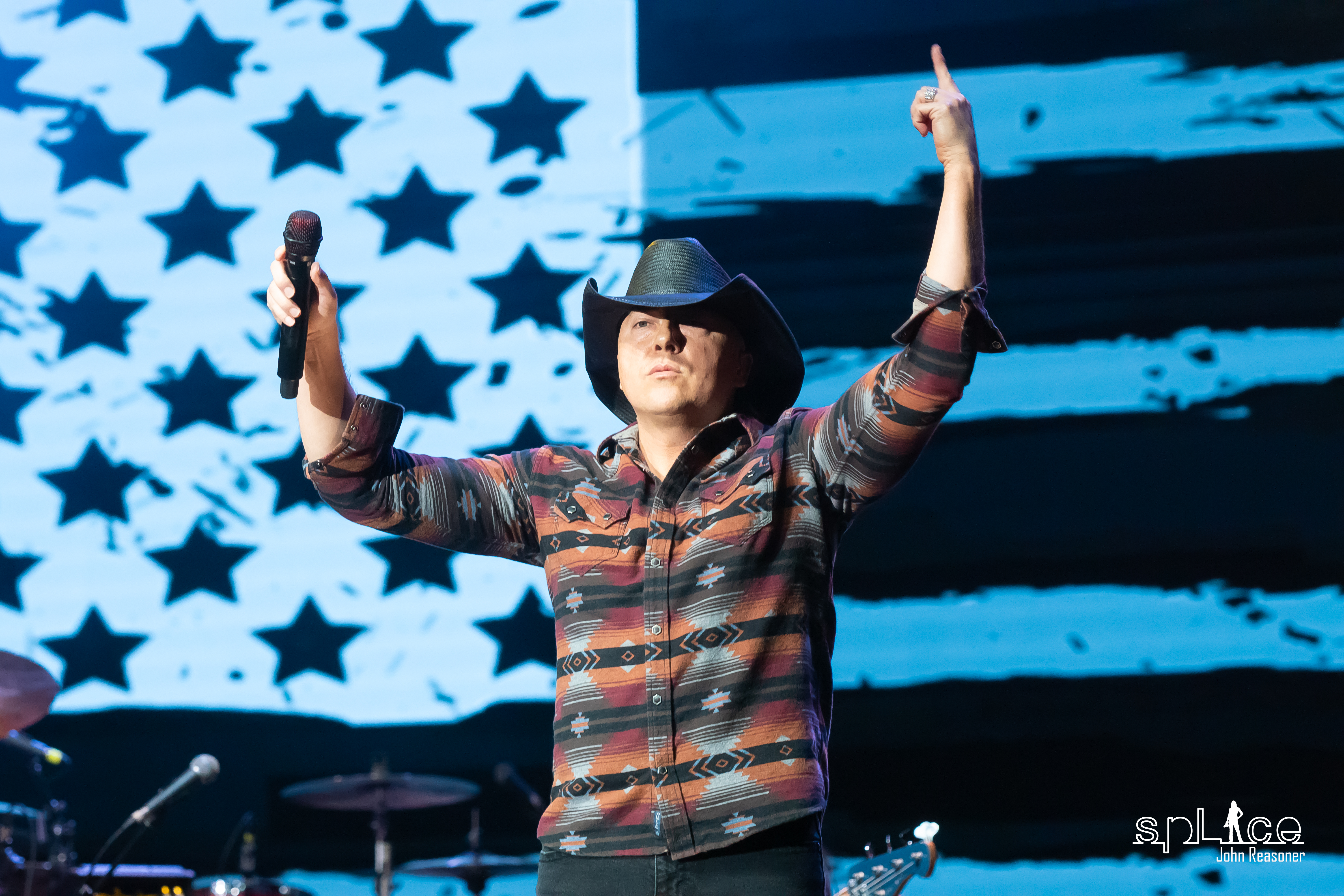 Upon his return, Creed is reunited with his hat and vest while a boy waves an American Flag for the anthem “Stomp My Flag I’ll Stomp Your Ass.” With the crowd cheering and waving their hands in the air, he introduces a new song “Wood Smoke,” before bringing the night to an end with “Old School.”