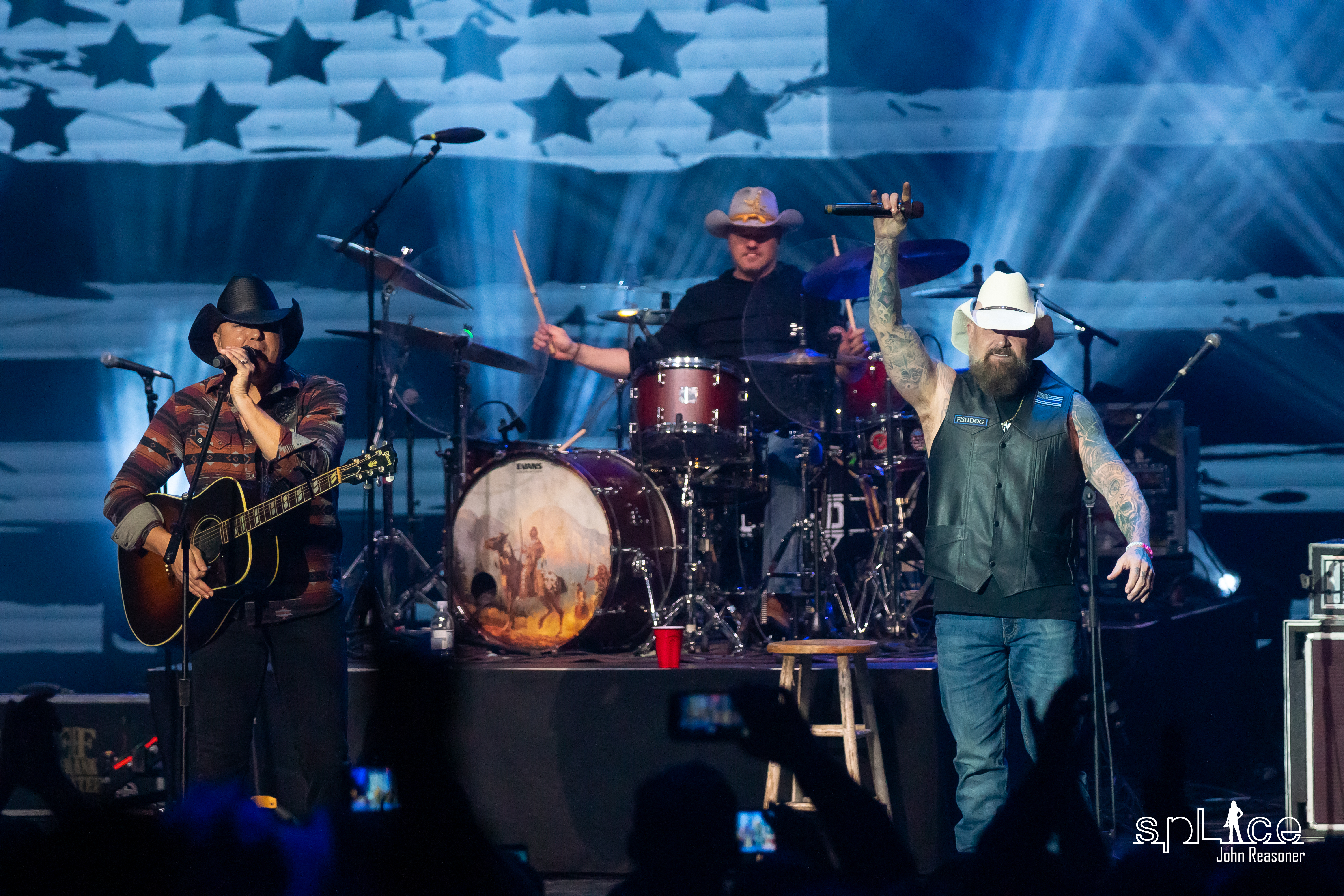 Thanking the crowd for coming this evening, Creed mentions “Frank Foster and I are a lot alike…our biggest thing, we sing Patriotic songs.” As the crowd cheers more, he continues with one of his first written songs he still plays today, “If You Have A Right To Burn My Flag (Then I Have A Right To Kick Your Ass).” With the crowd still standing and waving their hands in the air as they sing along, they continue with his hit song, “Maybe I Am.”