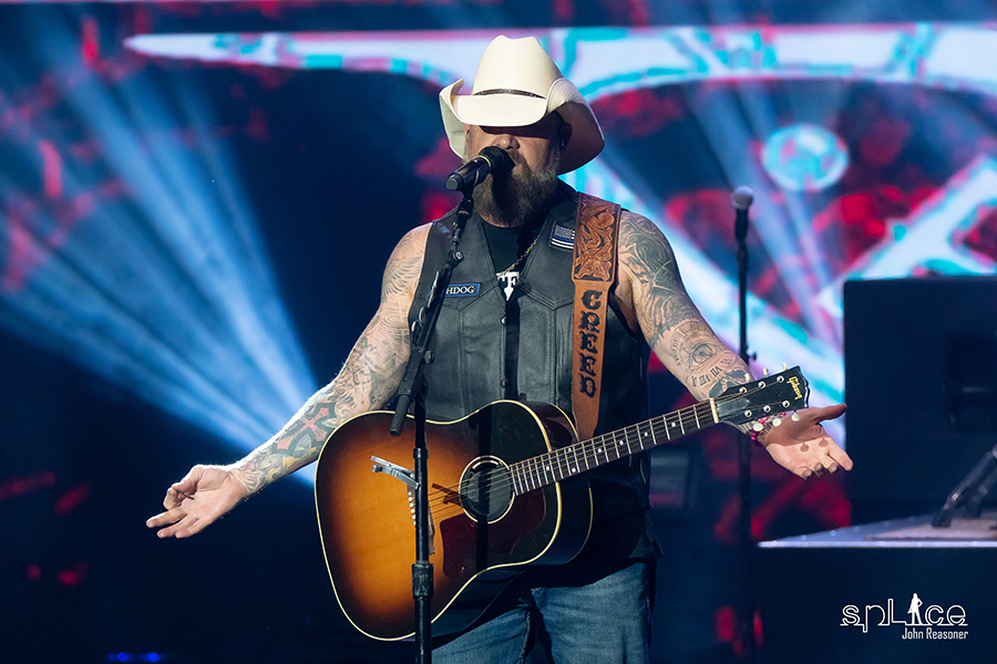 Thanking the crowd for coming this evening, Creed mentions “Frank Foster and I are a lot alike…our biggest thing, we sing Patriotic songs.” As the crowd cheers more, he continues with one of his first written songs he still plays today, “If You Have A Right To Burn My Flag (Then I Have A Right To Kick Your Ass).” With the crowd still standing and waving their hands in the air as they sing along, they continue with his hit song, “Maybe I Am.”