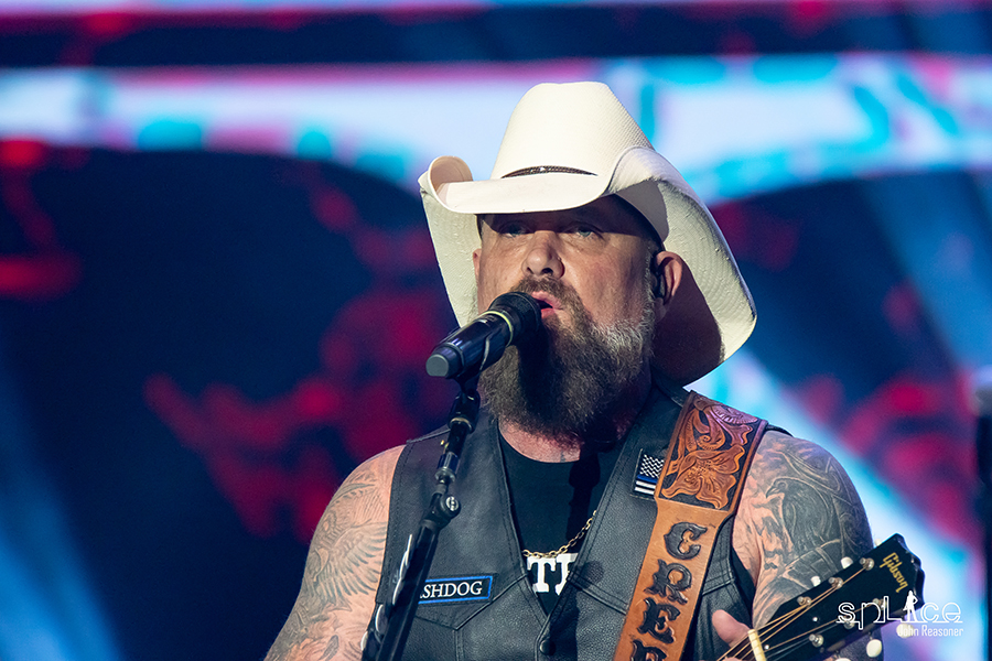 Thanking the crowd for coming this evening, Creed mentions “Frank Foster and I are a lot alike…our biggest thing, we sing Patriotic songs.” As the crowd cheers more, he continues with one of his first written songs he still plays today, “If You Have A Right To Burn My Flag (Then I Have A Right To Kick Your Ass).” With the crowd still standing and waving their hands in the air as they sing along, they continue with his hit song, “Maybe I Am.”
