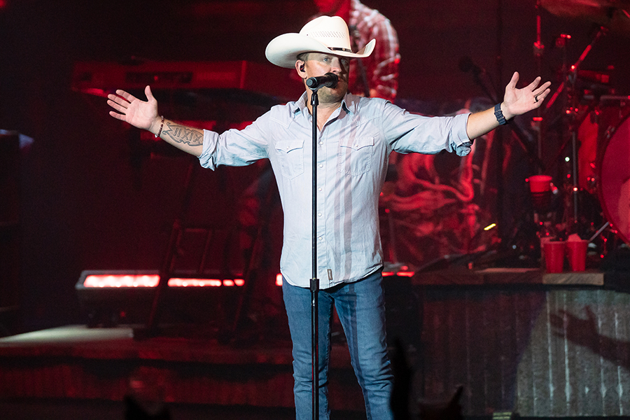 The stage lights slowly come up, the crowd rises to their feet while the band proceeds to their position to play their “Arkansas Intro” as tour manager, JR Runnels announces Justin Moore to the stage. The show kicks off with a six song run that begins with Moore showing off his country charm (on stage and video screen) with “Bait A Hook” and continues on with he and his band having fun on stage with “You Look Like I Need A Drink,” “Somebody Else Will,” “Till My Last Day” and “Kinda Don’t Care” before the Waylon Jennings hit “Good Ol’ Boys (Dukes Of Hazzard).” The crowd since his introduction on stage, has continued to stand and sway to the music while singing along to all the songs performed.