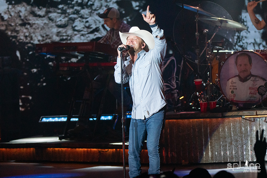 The stage lights slowly come up, the crowd rises to their feet while the band proceeds to their position to play their “Arkansas Intro” as tour manager, JR Runnels announces Justin Moore to the stage. The show kicks off with a six song run that begins with Moore showing off his country charm (on stage and video screen) with “Bait A Hook” and continues on with he and his band having fun on stage with “You Look Like I Need A Drink,” “Somebody Else Will,” “Till My Last Day” and “Kinda Don’t Care” before the Waylon Jennings hit “Good Ol’ Boys (Dukes Of Hazzard).” The crowd since his introduction on stage, has continued to stand and sway to the music while singing along to all the songs performed.
