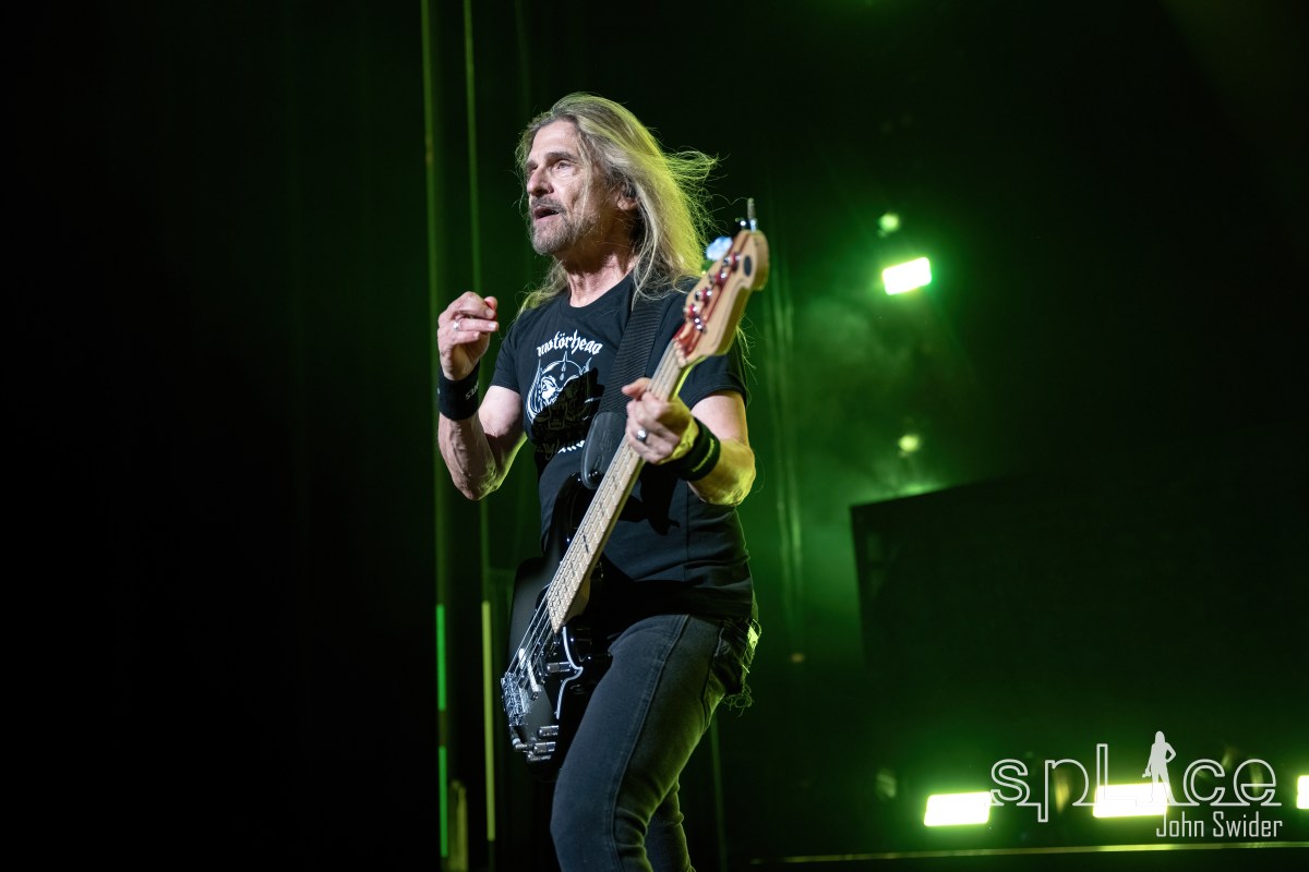 “Wake Up Dead” followed, a thrash anthem from their Peace Sells… but Who’s Buying? era. The rapid-fire tempo and relentless, driving riffs pushed the energy in the crowd to new heights. Verbeuren’s drumming was particularly noteworthy here, as he navigated the song’s intricate time changes with ease, never sacrificing power for precision. Meanwhile, LoMenzo’s bass lines added a muscular undertone that gave the song its propulsive drive.