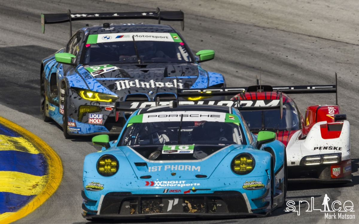 At the seventy four minute mark of the race, the No. 6 Porsche Penske car tangled with a pair of GT cars which ended their race as well as the teams championship hopes. The series leading No. 31 Whelen Engineering Racing Cadillac V-Series coming into the weekend, lost their overall lead to the No. 10 Konica Minolta Racing Acura ARX-06 as the Acura out qualified the Cadillac by grabbing pole position. Drama would rear its head again much later in the race. With an hour to go in the race, the No. 10 Acura attempted a pass the No 31 Cadillac in turn one. With the cars side by side contact was made and the Acura found itself heading off track and making contact with the barrier, ending its championship hopes.