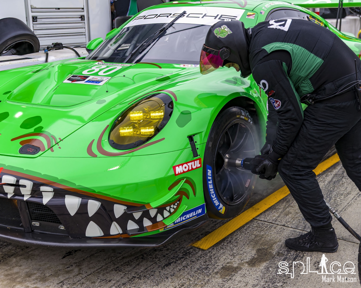 In the GTD class the No. 78 Forte Racing Powered by USRT Lamborghini Huracán GT3 EVO2 snagged their very first GTD win of the season after overcoming several penalties. With the team out of the top five with just two hours remaining, driver Loris Spinelli put on a flawless display of driving and got the team into fourth place with an hour to go. Just before the final hour the team found itself in the lead. With the No. 16 Wright Motorsports Porsche 911 GT3 R (992)looking like it would grab a solid second in the race it was involved in an incident between two other teams and received heavy damage that left the car in flames. The No. 80 AO Racing Porsche 911 GT3 R (992), running in third place followed the Wright Motorsports Porsche off course losing its place on the track. The No. Turner Motorsport 96 BMW M4 GT3 was able to avoid the chaos and claim second place. Coming in third was No. 77 Wright Motorsports Porsche.