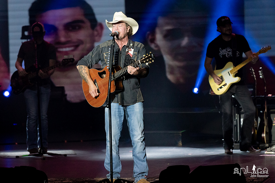 Tracy sends prayers out to one of his touring pals, fellow 90’s country artist Mark Chesnutt, who recently underwent a quadruple heart bypass. Doing so, he and the band add Mark’s “Old Flames Have New Names” to the set.