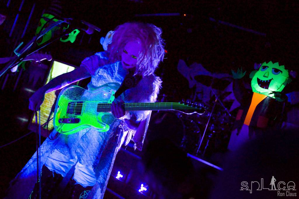 Starting the show with the crowd making room, JOHN 5 takes the stage dressed in what appears to be a white angel outfit, all while being accompanied by bassist Ian Ross and drummer Logan Miles Nix. The stage was further crowded with blow up monsters and large screen TV’s running classic monster movie clips, including Godzilla. John starts with “Season of the Witch” from the 2017 self-titled album, followed by the technical and high-revving shred of “This is my Rifle”, which is actually a tribute to guitar virtuoso Al di Meola and someone who John has collaborated with in the past. Intricate and diverse, John’s third song of the night is “Six Hundred and Sixty-Six Pickers in Hell” which is off the “Careful With That Axe” album.