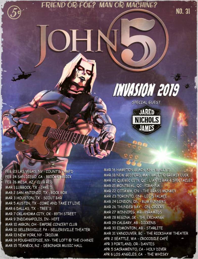 Akron, OH (March 10, 2019) – JOHN 5 and the Creatures at the Empire Concert Club and Bar with special guests Dead Girls Academy and Jared James Nichols. Reminiscent of the previously released album Season of the Witch, JOHN 5 is right in the middle of releasing monthly music videos, starting with “Zoinks!”, “Crank It – Living with Ghosts”, and this month’s latest, “I am JOHN 5”. As if John is not busy enough between videos and core duties as Rob Zombie’s lead guitarist, we were lucky enough to catch JOHN 5 on tour supporting his new and upcoming album, “Invasion”, slated for summer 2019 release.