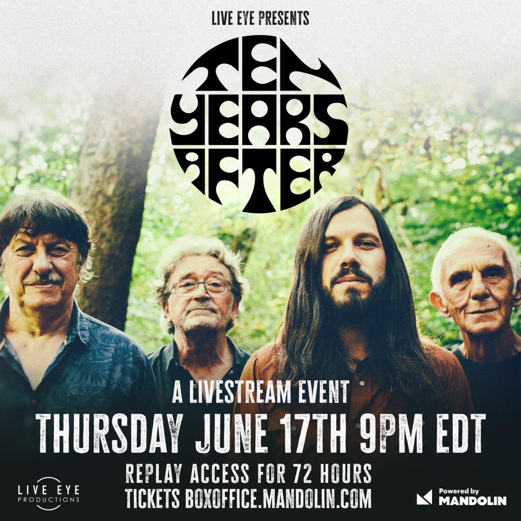 The Ten Years After portion of the performance will be taking place on June 17th at 9pm EDT (with replay access available for 72 hours afterwards), tickets are available for purchase via boxoffice.mandolin.com.