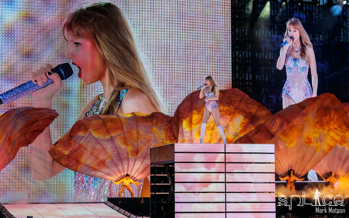When the clock emblazoned on the giant video screen that is part of the main stage ticked down to zero the near seventy thousand souls that were packed into the stadium erupted as one in cheers. As the curtain lifted her dancers glided out onto the stage wearing what could be best described as colorful parachutes. They made their way from the main stage across the walkway to the second stage, they all bowed down and as they lifted their parachutes back up there was Taylor, adorned in a Versace body suit. She kicked off the Lovers era with “Miss America & the Heartbreak Prince” which she turned into a medley with “Cruel Summer”. Swift strutted around the center stage delivering both songs with incredible passion and energy. When she stopped at center stage, a platform would raise her up as she continued her performance. As the song wound down, she was lowered down and she made her way back to the main stage and two of her dancers put a Versace blazer on her. The curtain was pulled back revealing a multi-level office building . She launched into “The Man”. With her dancers decked out in business attire they put on a Broadway worthy performance. Taylor worked her way to the top and was accompanied along the way by her dancers with her reaching the top level alone. Indeed the performance spoke to the heart of the song and its assessment of inequality and gender pay gap. The Lovers Era ended with “Lovers” and “The Archer”.
