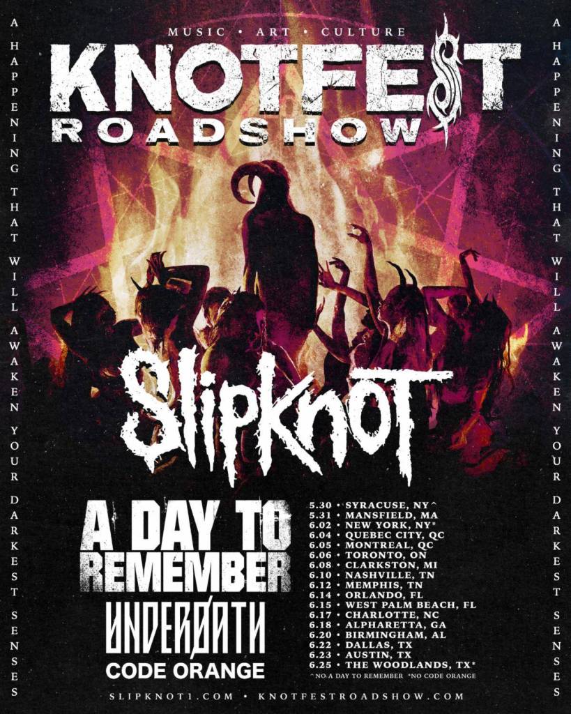 Live Nation (February 4, 2020) – Following the enormous success of 2019’s inaugural KNOTFEST ROADSHOW Tour, the multi-platinum, Grammy Award-winning hard rock band, Slipknot have announced that they will once again be hitting the road this summer to headline the KNOTFEST ROADSHOW 2020 North American tour produced by Live Nation. Joining them and rounding out a killer line-up showcasing the best the world of heavy music has to offer, will be special guests, A Day To Remember, Underoath, and Code Orange.