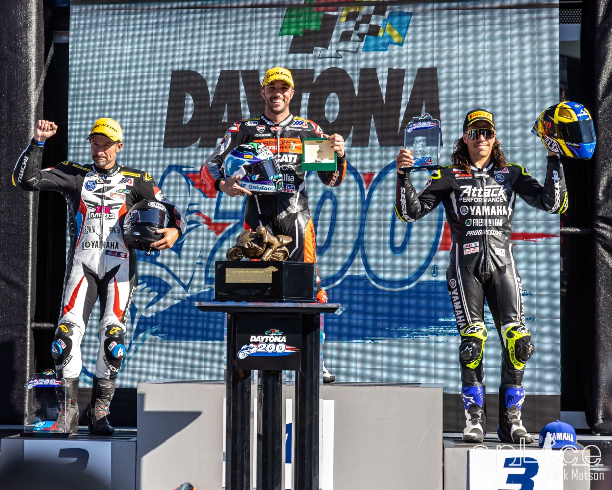 Hayes pulled a gap out of the chicane and carried it into the final banking. But that wouldn’t be enough as the field reeled him in as they were getting near the main straight. At that point Herrin utilized the draft to perfection and dove down the track to claim a thrilling win and his first Rolex watch. Following him closely in second place was Josh Hayes, and rounding out the podium was Cam Petersen in third. While the winner of the last two years Brandon Paasch rode a great race and was among the leaders, he had received a twelve second penalty that knocked him down to twelfth place.