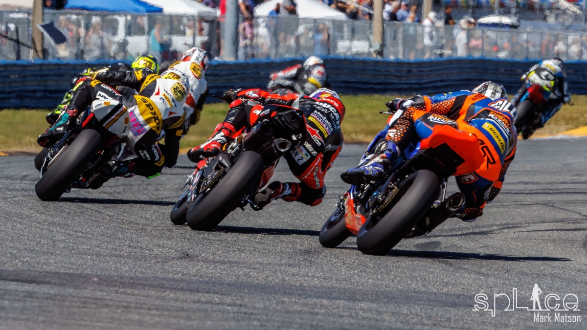 Hayes pulled a gap out of the chicane and carried it into the final banking. But that wouldn’t be enough as the field reeled him in as they were getting near the main straight. At that point Herrin utilized the draft to perfection and dove down the track to claim a thrilling win and his first Rolex watch. Following him closely in second place was Josh Hayes, and rounding out the podium was Cam Petersen in third. While the winner of the last two years Brandon Paasch rode a great race and was among the leaders, he had received a twelve second penalty that knocked him down to twelfth place.