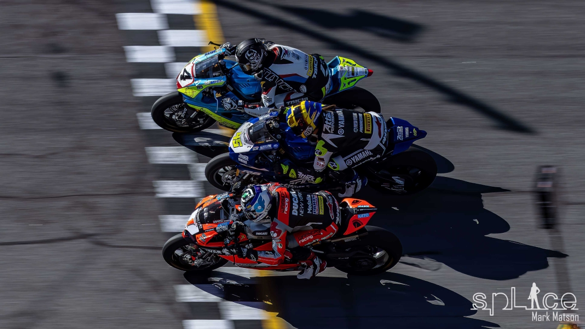 Hayes pulled a gap out of the chicane and carried it into the final banking. But that wouldn’t be enough as the field reeled him in as they were getting near the main straight. At that point Herrin utilized the draft to perfection and dove down the track to claim a thrilling win and his first Rolex watch. Following him closely in second place was Josh Hayes, and rounding out the podium was Cam Petersen in third. While the winner of the last two years Brandon Paasch rode a great race and was among the leaders, he had received a twelve second penalty that knocked him down to twelfth place.
