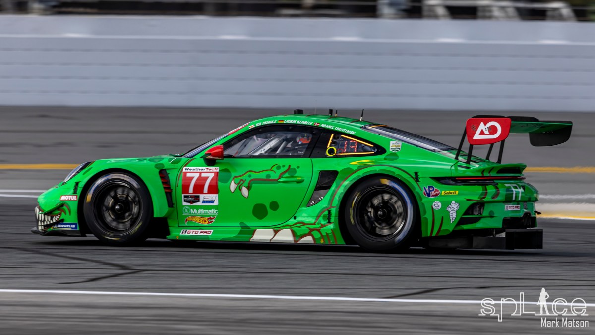 In the GTD Pro class Seb Priaulx piloted the No. 77 AO Racing Porsche 911 GT3 R (992) to his first career Motul Pole Award with a lap of 1 minute 44.382 seconds (122.780 mph). Priaulx will share driving duties of the fan favorite car is dubbed “Rexy” for its green dinosaur livery with Laurin Heinrich and Michael Christensen. While things turned out well for the squad, the qualifying session was red flagged, and this threw off Priaulx’s rhythm. But he was able to keep his focus saying, “I kept my head down and focused on what I could do,” Priaulx said. “It worked out today, and I’m really happy.”