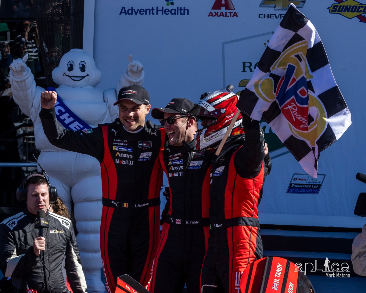 At the post-race press conference Sebastien Bourdais told everyone “It was a weird race, but we had hopes at times. Sometimes it felt like it was a bit hopeless, and to come out on top no matter how you got there at some point, it’s just one of those races where nobody remembers how you got there, and personally it’s my third, but it never gets old winning. I’m really happy that we could bring the result for John who’s been running after that Rolex for a little while.”