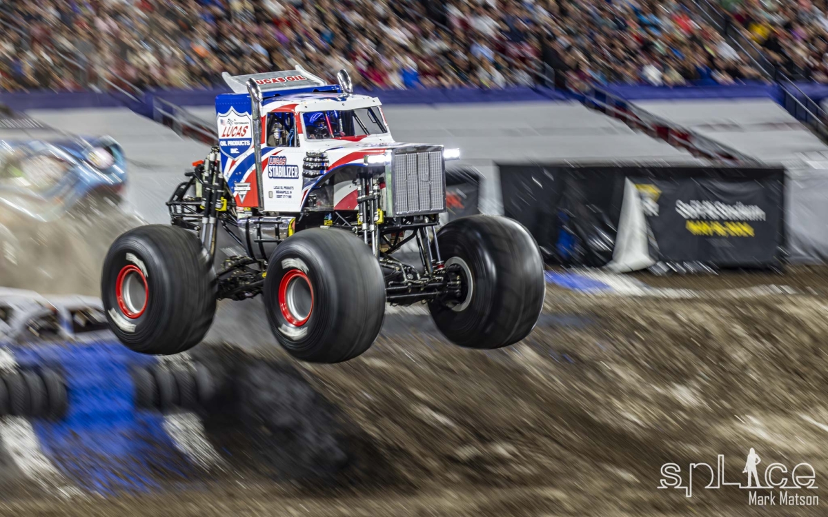 This nights show featured some of the wildest trucks you’ll ever see with larger than life names such as  Grave Digger, JCB DIGatron, Max-D, Great Clips Mohawk Warrior, Megalodon, Bad Company, Black Pearl, Shaker, El Toro Loco, Lucas Stabilizer, Kraken, and Jester. These behemoths are seventeen feet long, stand over ten feet high and weigh some six tons. It’s no wonder they need some fifteen hundred horsepower to get them to quite literally fly around the course in the stadium.