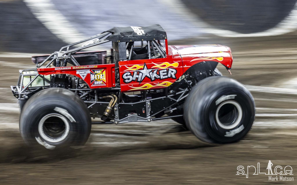 This nights show featured some of the wildest trucks you’ll ever see with larger than life names such as  Grave Digger, JCB DIGatron, Max-D, Great Clips Mohawk Warrior, Megalodon, Bad Company, Black Pearl, Shaker, El Toro Loco, Lucas Stabilizer, Kraken, and Jester. These behemoths are seventeen feet long, stand over ten feet high and weigh some six tons. It’s no wonder they need some fifteen hundred horsepower to get them to quite literally fly around the course in the stadium.