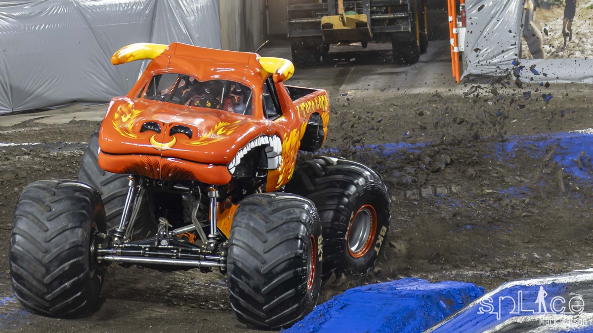 This nights show featured some of the wildest trucks you’ll ever see with larger than life names such as Grave Digger, JCB DIGatron, Max-D, Great Clips Mohawk Warrior, Megalodon, Bad Company, Black Pearl, Shaker, El Toro Loco, Lucas Stabilizer, Kraken, and Jester. These behemoths are seventeen feet long, stand over ten feet high and weigh some six tons. It’s no wonder they need some fifteen hundred horsepower to get them to quite literally fly around the course in the stadium.