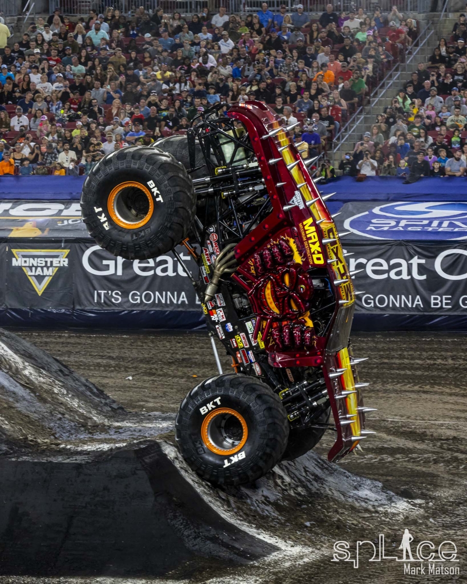 This nights show featured some of the wildest trucks you’ll ever see with larger than life names such as Grave Digger, JCB DIGatron, Max-D, Great Clips Mohawk Warrior, Megalodon, Bad Company, Black Pearl, Shaker, El Toro Loco, Lucas Stabilizer, Kraken, and Jester. These behemoths are seventeen feet long, stand over ten feet high and weigh some six tons. It’s no wonder they need some fifteen hundred horsepower to get them to quite literally fly around the course in the stadium.