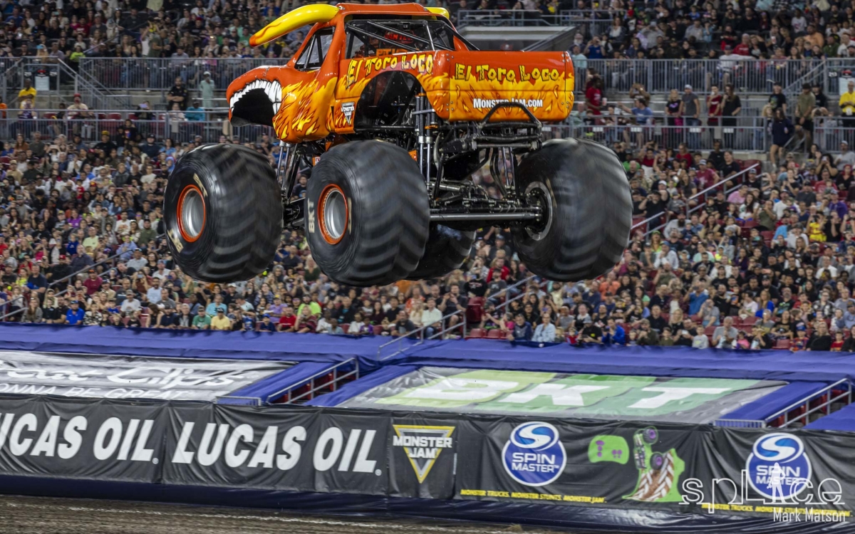 This nights show featured some of the wildest trucks you’ll ever see with larger than life names such as Grave Digger, JCB DIGatron, Max-D, Great Clips Mohawk Warrior, Megalodon, Bad Company, Black Pearl, Shaker, El Toro Loco, Lucas Stabilizer, Kraken, and Jester. These behemoths are seventeen feet long, stand over ten feet high and weigh some six tons. It’s no wonder they need some fifteen hundred horsepower to get them to quite literally fly around the course in the stadium.