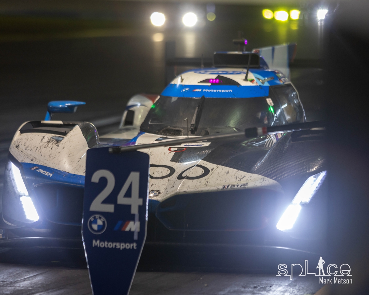 While there was much concern about the reliability of the new GTP car’s the Acura’s, Cadillac’s , and Porsche’s were holding up well, but luck was not with one of the BMW’s. Technical gremlins forced the number 25 BMW to a halt on the track only for it to be brought back to the garages. As the evening progressed the Cadillac’s started to come alive and put pressure on the Acura’. After a restart later in the evening Helio Castroneves, two time Rolex champ as well as Indy 500 champ, was at his turn behind the wheel of the race leading number 60 Acura. As the flag went green Castroneves spun the car heading into turn one and flat spotted the tires. After getting the car pointed the right way , he made his way back to the pits for a full tire change. But the damage was done and now the 31 Whelen Cadillac snatched the lead with a resurgent Porsche in second place.