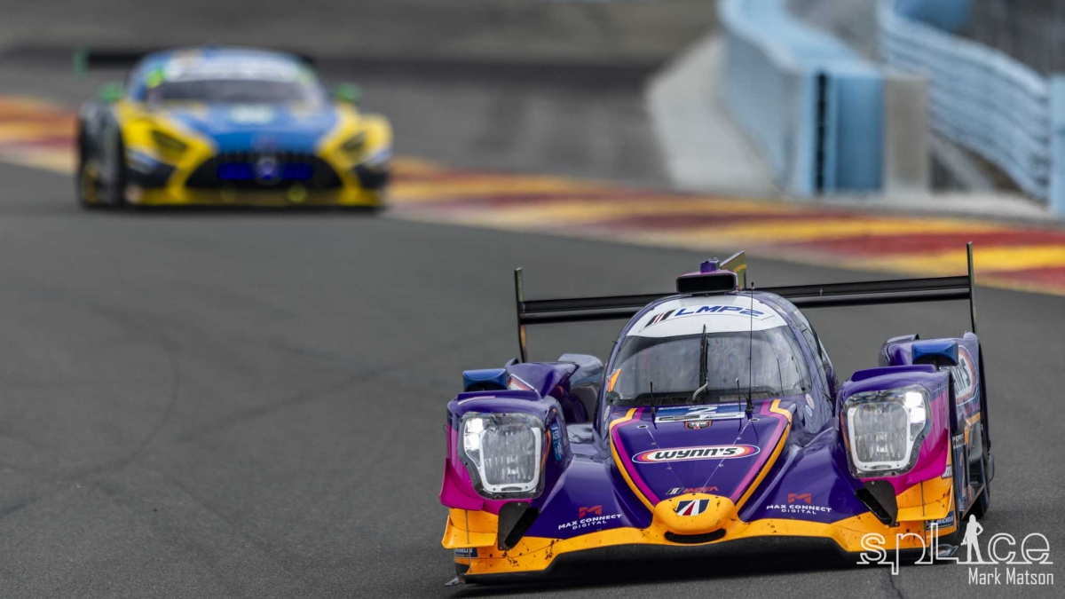 During the next full course caution caused by George Kurtz in the Crowdstrike by APR LMP2 that hit Roberto Lecorte’s Cetilar GTD Ferrari and put him into the fence at turn eight, the field dove into the pits for their first round of stops. At the restart Phillip Eng’s #24 BMW M Hybrid V8 was now leading the field.