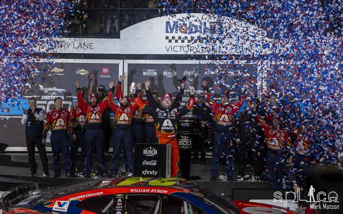 After the race was over Byron went on to say  “Yeah, obviously some good fortune, but just trusted my instincts on the last lap there. I felt like they were getting squirrelly on the bottom, and I was honestly going to go third (top) lane regardless because I was probably sixth coming down the back. Just obviously fortunate that it worked out in our favor. But just really proud of this team. Worked super hard all week and had an amazing car. Just had a really hard time with the fuel-saving and kind of staying towards the front. Crazy. I can’t honestly believe that. But we’re here. So proud of it.”