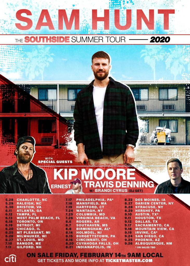 In addition to the April 3 album release, Hunt plans to hit the road on The Southside Summer Tour 2020 with special guests Kip Moore, Travis Denning, Ernest, and a DJ set by Brandi Cyrus. With Live Nation as the official tour promoter, The Southside Summer Tour will kick off May 28 in Charlotte, and head to over 40 markets including Chicago, St. Louis, Philadelphia, Birmingham, Houston, Phoenix, San Diego and more (full routing below). Citi is the official presale credit card for The Southside Summer Tour and as such, Citi cardmembers will have access to purchase presale tickets through Citi Entertainment® beginning Tuesday, Feb. 11 at 10 a.m. local time through Thursday, Feb. 13 at 10 p.m. local time. For complete presale details visit www.citientertainment.com. Public on sale opens Friday, Feb. 14 at 9 a.m. local time. For more information visit www.ticketmaster.com.